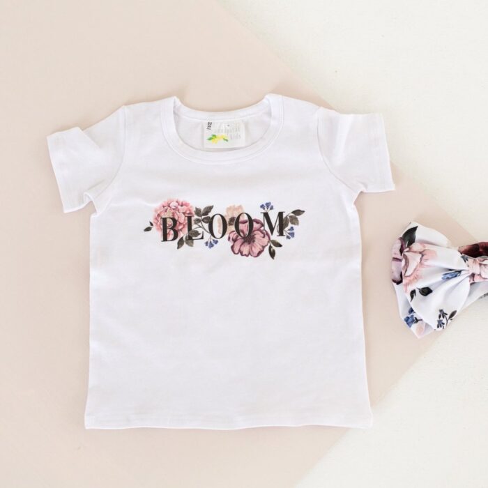 A plain white long sleeve vest with Bloom print.