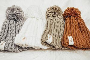 Our gorgeous beanies are hand knitted especially for you! We use a thick, chunky wool to make sure your mini is snug and warm.