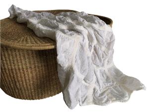 Our Dreamy blanket has double layers of cotton muslin with extra fine merino wool in between. It’s handmade by using nuno felting technique where the layers of fibers are bond together with no stitching required.