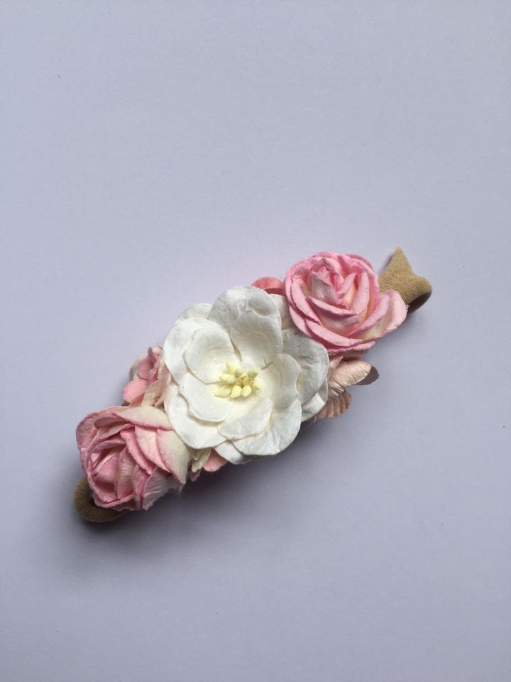 Pink & white floral head band