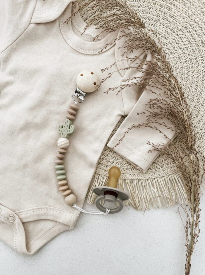 Personalized pacifier clip available in different colour combinations. See drop down colour tab below, select two colours, insert name you would like on your clip and leave the rest to us!