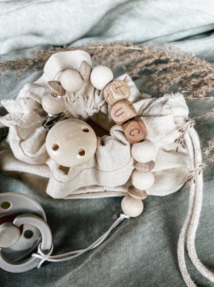 Full of Beans Personalized Paci Clip | Wooden Beads | Natural