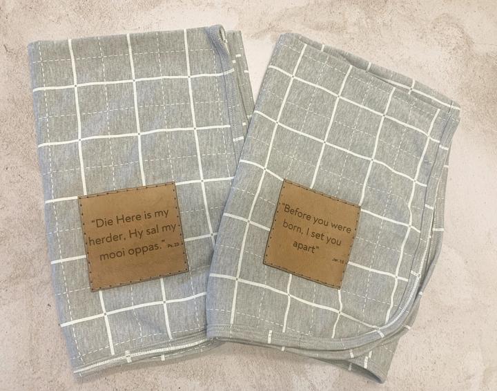 Grid & leather baby blanket