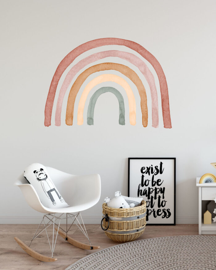 This large rainbow will brighten any room! Perfect for above a cot in a nursery or to add colour to a play room. This wall decal is easy to apply and easy to remove. Won’t damage your walls either!