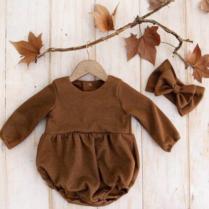 A full volume romper with a pretty shimmer. Press studs at the back and crotch for easy nappy changing.
