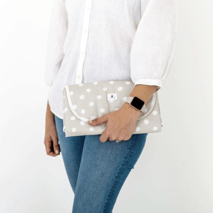 Our Oatmeal Spot Change Mat is a practical and stylish travel change mat that folds up to fit in your nappy bag, nappy caddy or can be used on-the-go as a changing clutch. This change mat is generously sized, water-resistant and comfortable for your baby’s delicate skin. It can be wiped down with ease and becomes a practical changing surface for your baby when you are out and about. Or, use it around the house on your bed, changing basket or in the lounge for a quick and mess-free change.