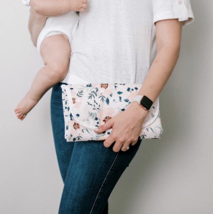 Our Peony Princess Change Mat is a practical and stylish travel change mat that folds up to fit in your nappy bag, nappy caddy or can be used on-the-go as a changing clutch.