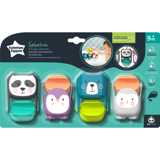 Spin, splash, scoop and pour. Enjoy splashtime fun with these bath time toys that spin as your little one pours water over them.