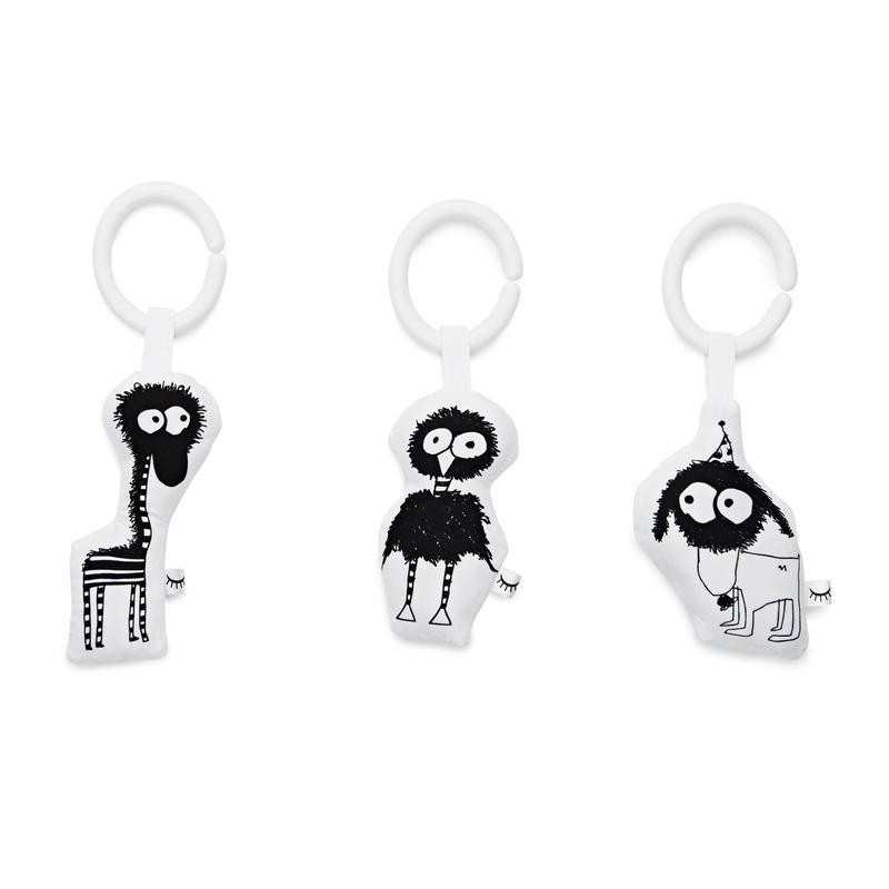 The black and white toy designs help stimulate baby’s vision