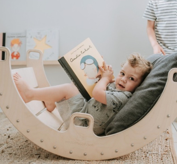 This beautiful hand crafted rocker is one of our most favourite products. It serves as a core and grip strengthening mobility piece as well as a fun and playful frame. Your little one can stand and pretend they surfing waves, or lie down quietly and read a book. Suitable as a rocker for you baby and the arch of the design adds the perfect amount of comfort for them and their growing little bodies.